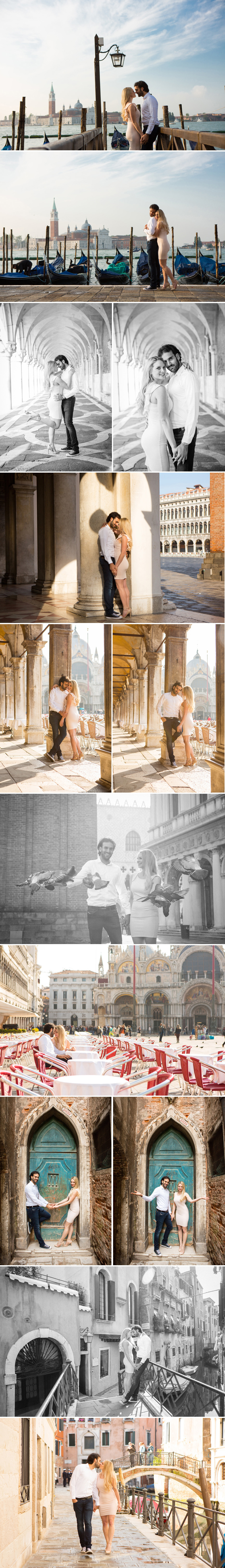 Cristina e Michele hanno scelto la luce dell’alba per il loro servizio fotografico a Venezia. E’ anche uno dei miei momenti preferiti per fotografare in Piazza San Marco. Quando il sole sorge nella laguna, la piazza e’ ancora deserta e la luce in Bacino San Marco e’ meravigliosa.